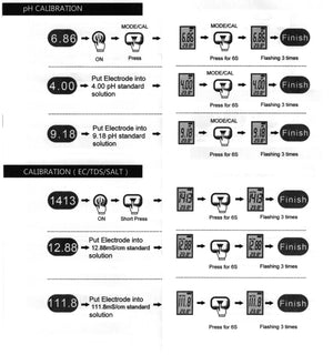 Instrumentet leveres ferdig kalibrert og klar til bruk. Etter mange gangers bruk anbefales rekalibrering. Til det benyttes medfølgende bufferpulver som blandes ut i 250 ml avionisert eller destillert vann.