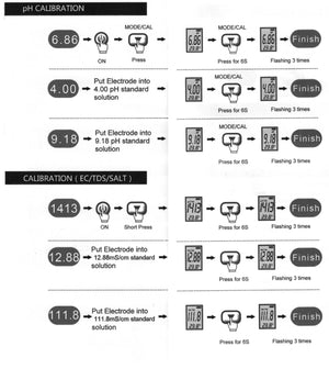 Instrumentet leveres ferdig kalibrert og klar til bruk. Etter mange gangers bruk anbefales rekalibrering. Til det benyttes medfølgende bufferpulver som blandes ut i 250 ml avionisert eller destillert vann.