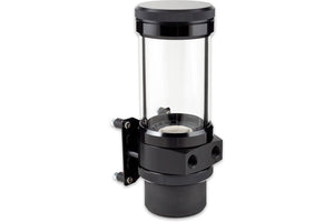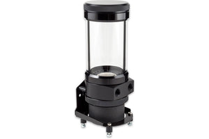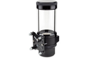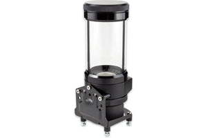 Utvendige sortanodiserte aluminiumsringer er festet til begge ender av glassrøret. Aluminiumsringene har ikke kontakt med kjølevæsken. Pumpeadapter og lokk er laget av det sterke materialet acetal. Skru av lokket og du har en stor åpning for påfylling av kjølevæske.