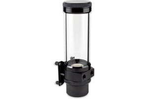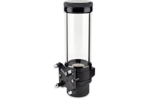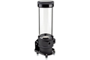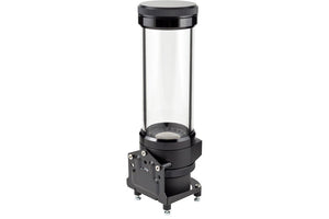 Utvendige sortanodiserte aluminiumsringer er festet til begge ender av glassrøret. Aluminiumsringene har ikke kontakt med kjølevæsken. Pumpeadapter og lokk er laget av det sterke materialet acetal. Skru av lokket og du har en stor åpning for påfylling av kjølevæske.