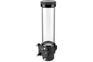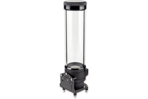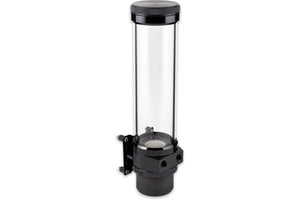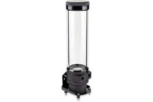 Utvendige sortanodiserte aluminiumsringer er festet til begge ender av glassrøret. Aluminiumsringene har ikke kontakt med kjølevæsken. Pumpeadapter og lokk er laget av det sterke materialet acetal. Skru av lokket og du har en stor åpning for påfylling av kjølevæske.