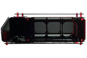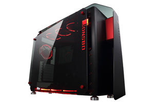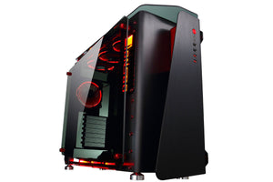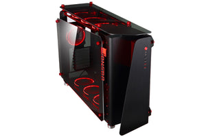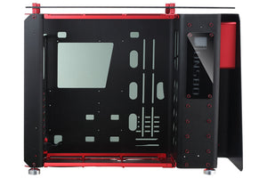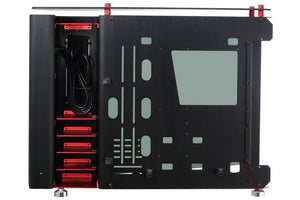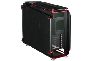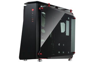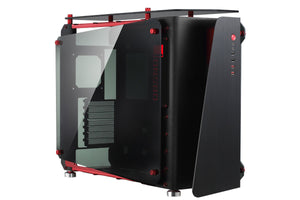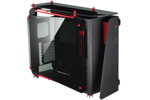 Det ekstragavante designet med røde fargeelementer understreker at kun det beste er godt nok. Chassiset er laget av en 3mm tykk aluminium/magnesium legering. Sidevinduene er laget av 5mm herdet glass (plexiglass ble ikke engang vurdert) og sikrer et utrolig stabilt og robust kabinett.