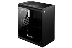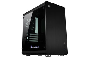 Jonsbo RM3 er et elegant kabinett med5mm herdet glass både på høyre og venstre side av kabinettet. En belyst Jonsbo logo nede på venstre side hever det visuelle inntrykket.
