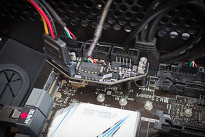 HUBBY7 kan få strøm enten fra en USB-kontakt på hovedkortet eller via en SATA strømkontakt.