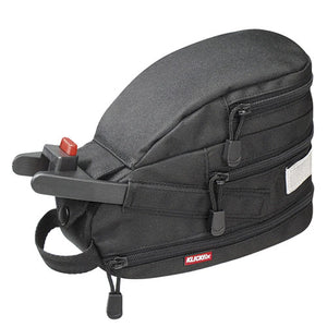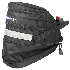Ved å åpne glidelåsen på den nedre delen kan hovedrommet ekspanderes. Separat rom med glidelås på toppen. Bærehåndtak foran. Refleksband og feste for baklys på baksiden.