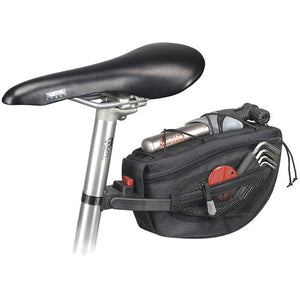 Denne modellen har en glassfiberforsterket avtagbar festebøyle og er laget spesiellt for den harde bruken MTB sykler ofte utsettes for. Romslig hovedrom, nettinglommer på begge sider og elastisk snor på toppen for oppbevaring av eksempelvis regntrekk (medfølger). Refleksband og feste for baklys på baksiden.