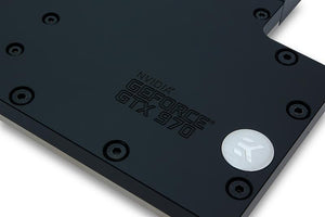 Heldekkende vannblokk for skjermkort produsert etter nVidia referanse design NVA-P2004. Den passer GeForce GTX 970 serien skjermkort.