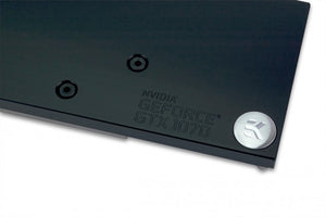 Denne vannblokken kjøler GPU, RAM og VRM. For å koble sammen flere vannblokker benyttes EK-FC Terminal broer.