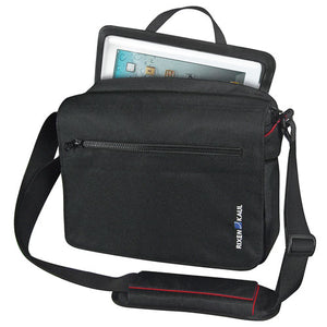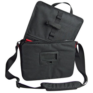 Kompakt veske med lomme for nettbrett. Du åpner glidelåsen og drar ut lommen med nettbrettet som om det var en skuff.