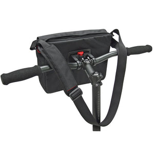 Justerbar posisjon. Baksiden har polstret underside og festes til stem med borrelås. Lommen kan om ønsket også frikobles helt fra vesken.